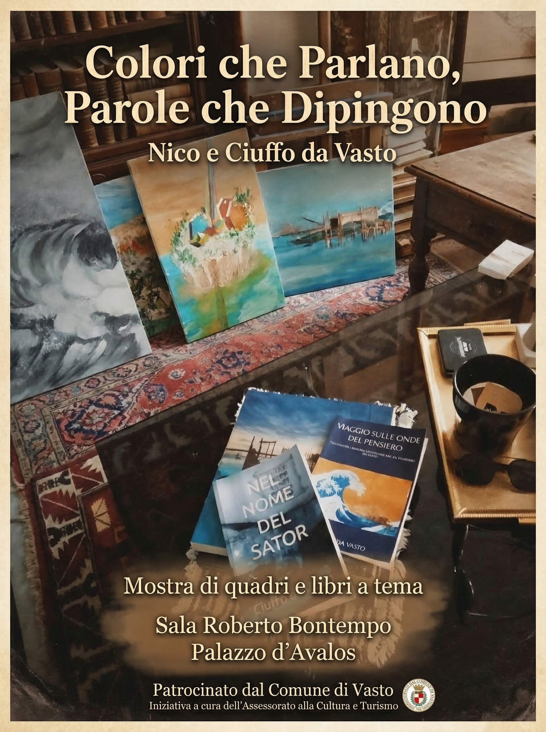 Un viaggio che unisce parola e colore. La mia voce, dal libro Viaggio sulle onde del pensiero, incontra le tele di Nico Dell’Olio, artista e architetto di Vasto che dipinge il mare come fosse un respiro.